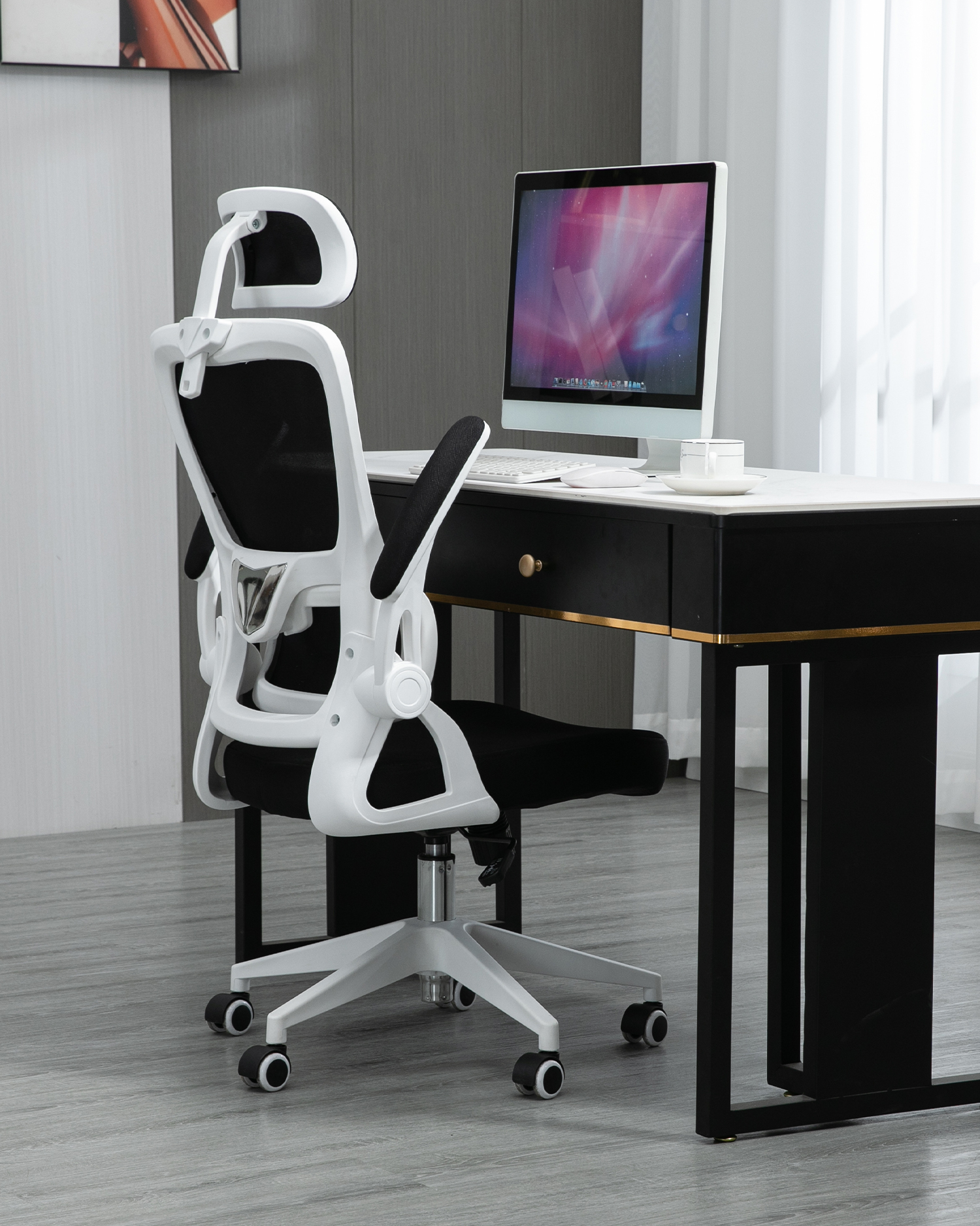 • این صندلی اداری دارای یک طرح رنگی سفید و سیاه و سفید و دارای طراحی منحصر به فرد است که هر دکوراسیون اداری مدرن را تکمیل می کند. مجهز به بازوهای قابل تنظیم ، این صندلی به شما امکان می دهد موقعیت بازوهای خود را برای راحتی بهینه تنظیم کنید. بازوهای بازو را می توان به سمت بالا یا پایین حرکت داد و همچنین می تواند به زاویه داخل یا خارج تنظیم شود ، و اطمینان حاصل می شود که از بازوهای شما در طبیعی ترین موقعیت پشتیبانی می شود.
